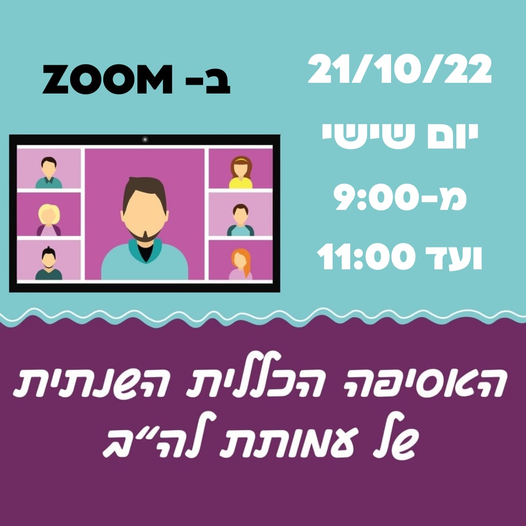 The annual general meeting will be held on Zoom on Friday, 10/21/22, at 9:00 a.m. Association members are invited to attend the meeting. Get updated and be part of the action. Agenda: 09:00-09:15 - opening, introduction 09:15-09:30 - a little about what's been happening in Israel since the last meeting 09:30-10:00 - presentation of financial reports, verbal report and review + time for questions